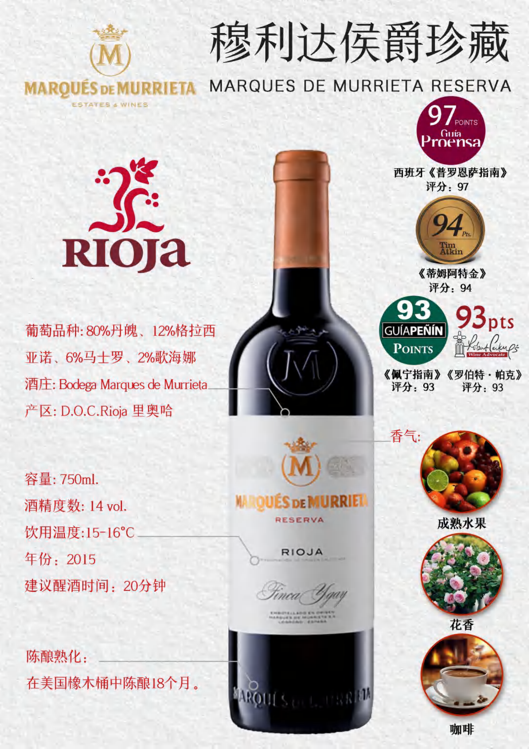 産品:等級: RESERVA; 年(nián)份:2015; 産區(qū):RIOJA