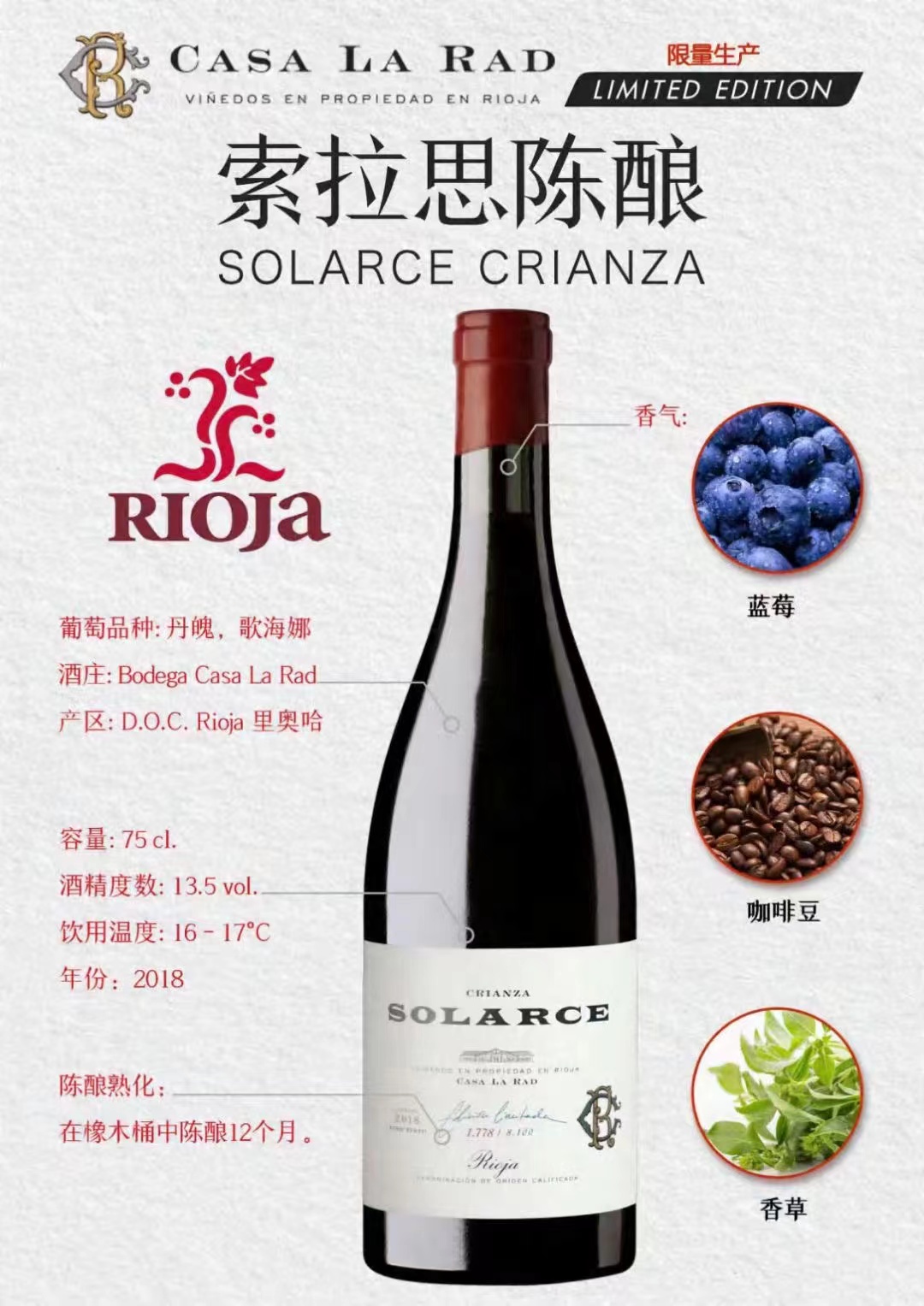 産品:等級:CRIANZA; 年(nián)份:2017; 産區(qū):RIOJA