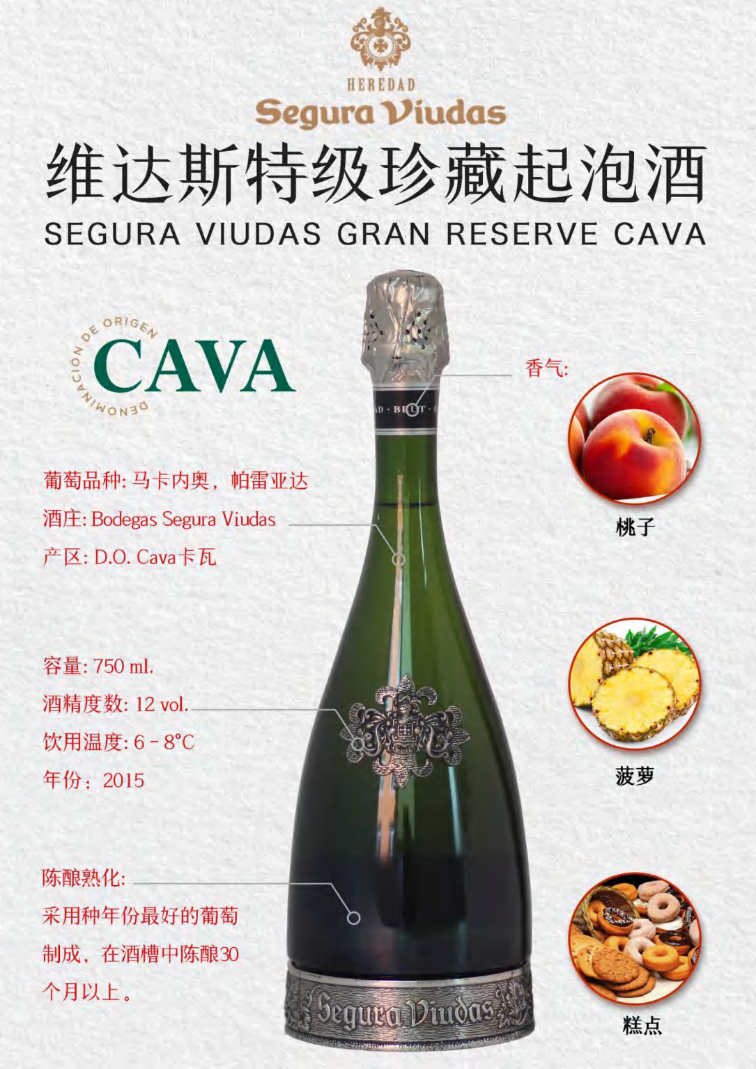 産品:等級:GRAN RESERVA; 年(nián)份:2015; 産區(qū):CAVA