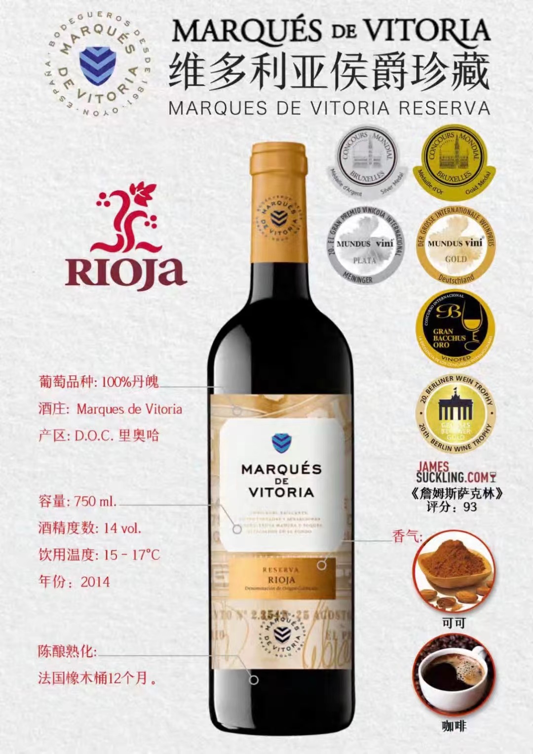 産品:等級: RESERVA; 年(nián)份:2014; 産區(qū):RIOJA